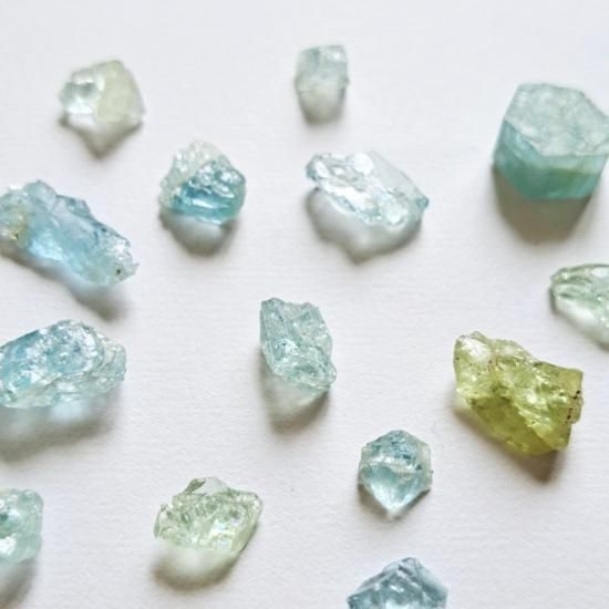 研磨されていないアクアマリン原石さざれは とても貴重で珍しく 素朴な美しさを持っています